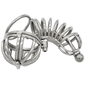 • Sonde d’urètre métallique : Propose une sensation de pénétration intense. Son trou central permet l’écoulement de l’urine et du sperme sans retirer la cage.