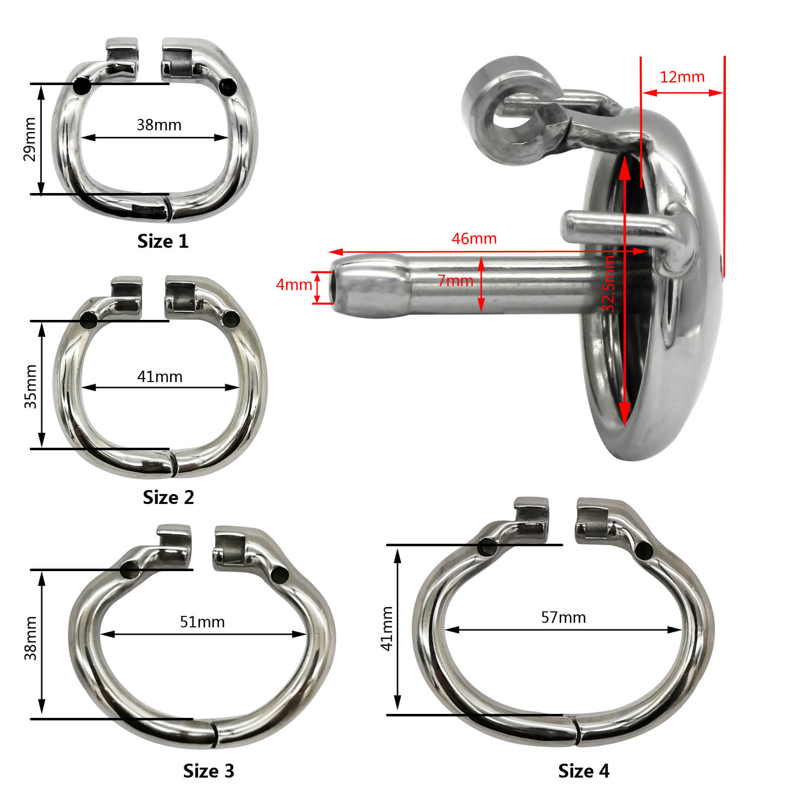 Spécifications techniques de la Micro Cage à Pénis en Acier CC33